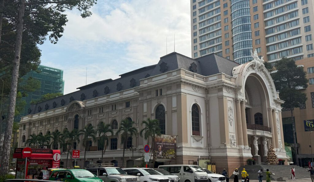 Het Saigon Opera House (officieel het Ho Chi Minh City Municipal Theatre) is een prachtig Frans koloniaal gebouw midden in het centrum. Alleen de buitenkant is al een foto waard, maar als je de kans hebt om binnen een voorstelling mee te pakken – doen! Van klassieke muziek tot traditionele Vietnamese shows: dit is cultuur snuiven op z’n best.